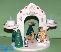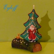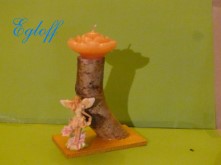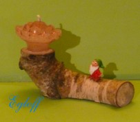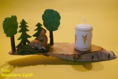 “Leuchtturm an Klippe”, Boden und Hinter- grund Birke, Leuchtturm ist Kerze.