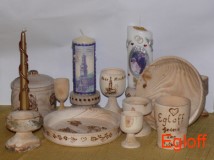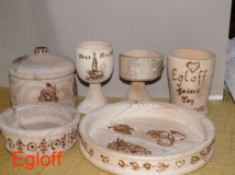 Eierbecher, längstgedrechselt, ca 8 cm Durchmesser, grüngedrechselt und lackert