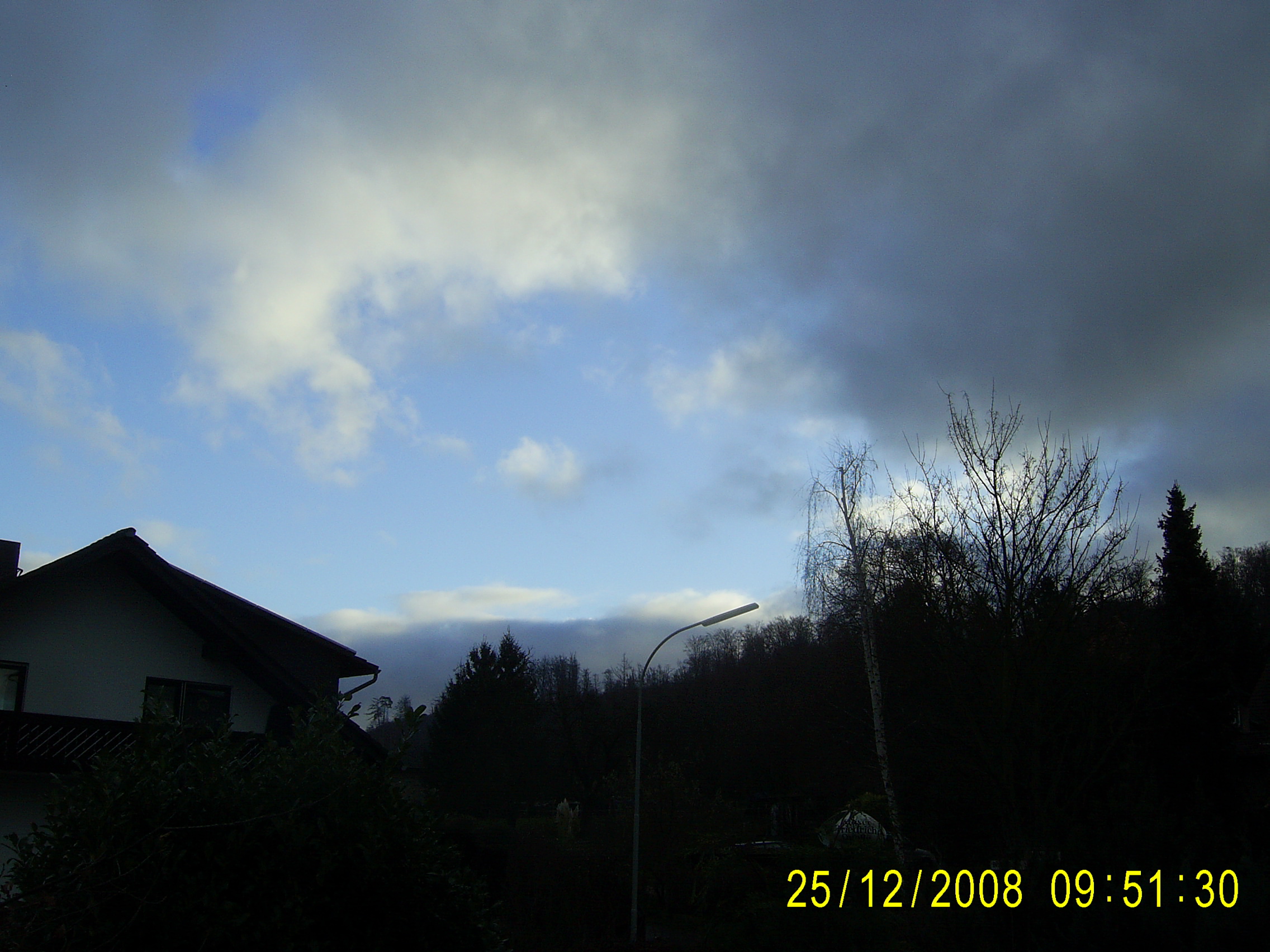 Tagsüber bewölkt, ab und zu Wolkenlücken, gg Abend Aufklaren u. Sterne glitzern