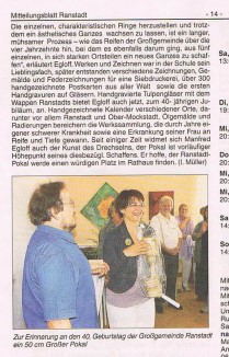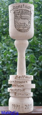 Zum 40. Geburtstag der Großgemeinde Ranstadt , ein Pokal an Bürger- meisterin Cäcilia Reichert- Dietzel überreicht.. |