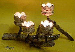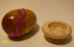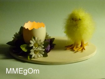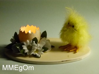 Gänseei- Tellicht mit Küken. |