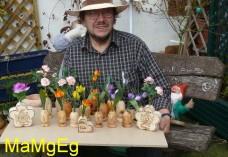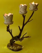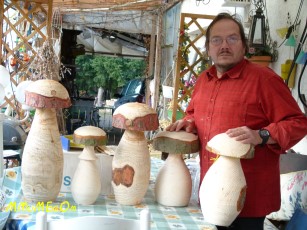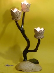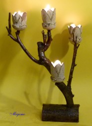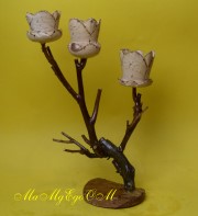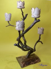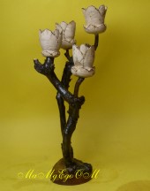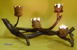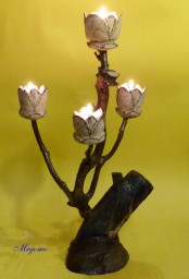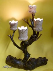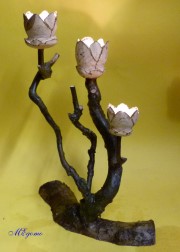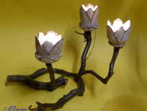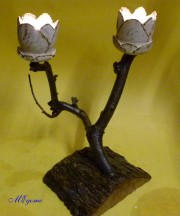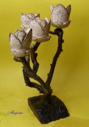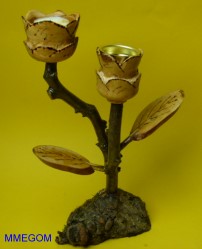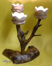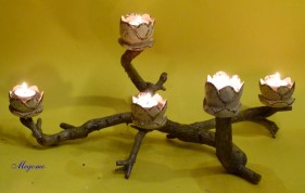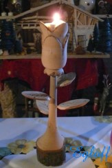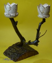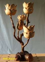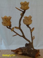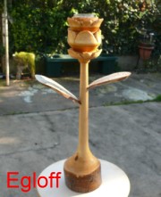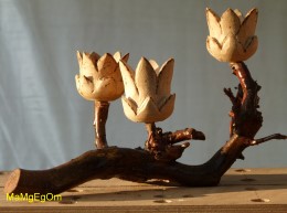 Gedrechselte, geschnitzte Blume auf Naturast |