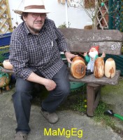 Für das Apfelfest im nord- deutschen Einbeck ein Wander- pokal.”Eine einen Apfel haltende Hand”. Gefertigt aus Eichenholz, Höhe ca 45 cm |