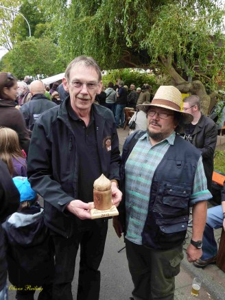 Für das Apfelfest im nord- deutschen Einbeck ein Wander- pokal.”Eine einen Apfel haltende Hand”. Gefertigt aus Eichenholz, Höhe ca 45 cm