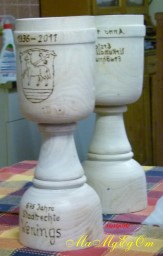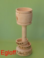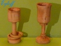 All diese Kelche sind aus einem Stück Holz gedrechselt, einschlißlich der Ringe. Die Kelche eignen sich für alle Gelegenheiten: Freundschaft, Verlobung, Hochzeit, Erinnerung an Ereignisse usw. usw. Auf Wunsch mit Einbrennungen (siehe Dk21)