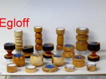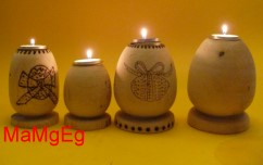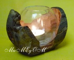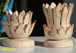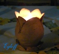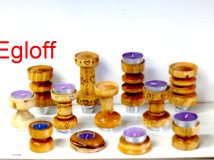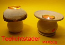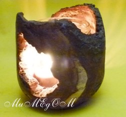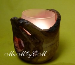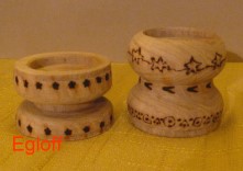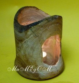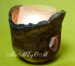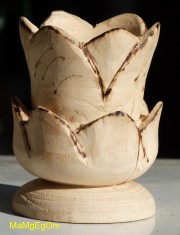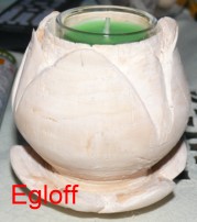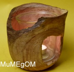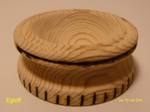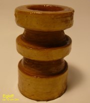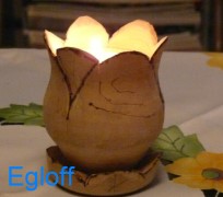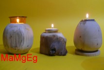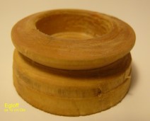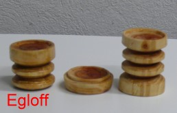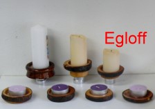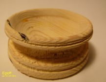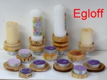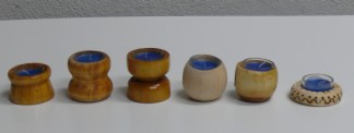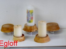 Kerzenständer, ca 6 cm hoch, 10 cm Durchmesser Weichholz quertgedrechselt, in trockenem Zustand . mit ausgehölter Kerze in Eierform