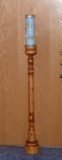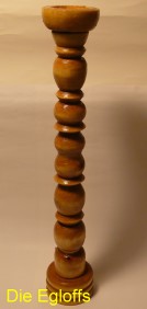 Kerzenständ er, ca 60 cm hoch, 15 cm Durchmesse r oben und unten, in der Mitte 8 cm., Birkenholz längstgedrec hselt, in grünem Zustand .