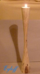 Kerzenständer, ca 15 cm hoch, 8 cm Durchmesser Birke ohne Rinde lä#ngs tgedrechselt, in nassem Zustand .