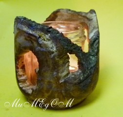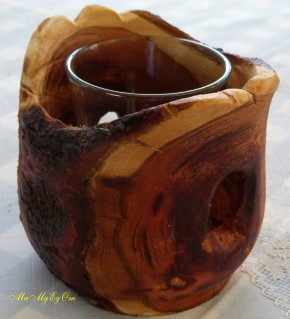 Kerzenständer, ca 10 cm durchmessend,, passend für Kerzen m.6 cm Durchmeser Eiche Hirnholz, introckenem Zustand .