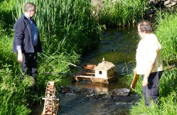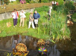 Bernd Schröder und Manfred Egloff beim Stapellauf der ersten Modelle beim Tag der Offenen Gartenprforte im Juni 2014; Schwalheimer Rad und Elb- Schiffsmühle