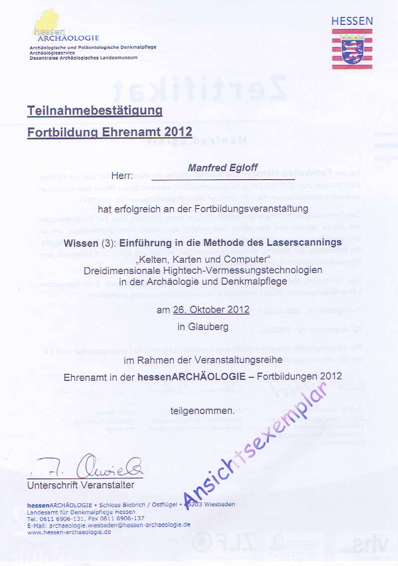 Teilnahme Fortbildung Ehrenamt 2012 am 26. Okt. 2012 bei der hessenARCHÄOLOGIE auf dem Glauberg