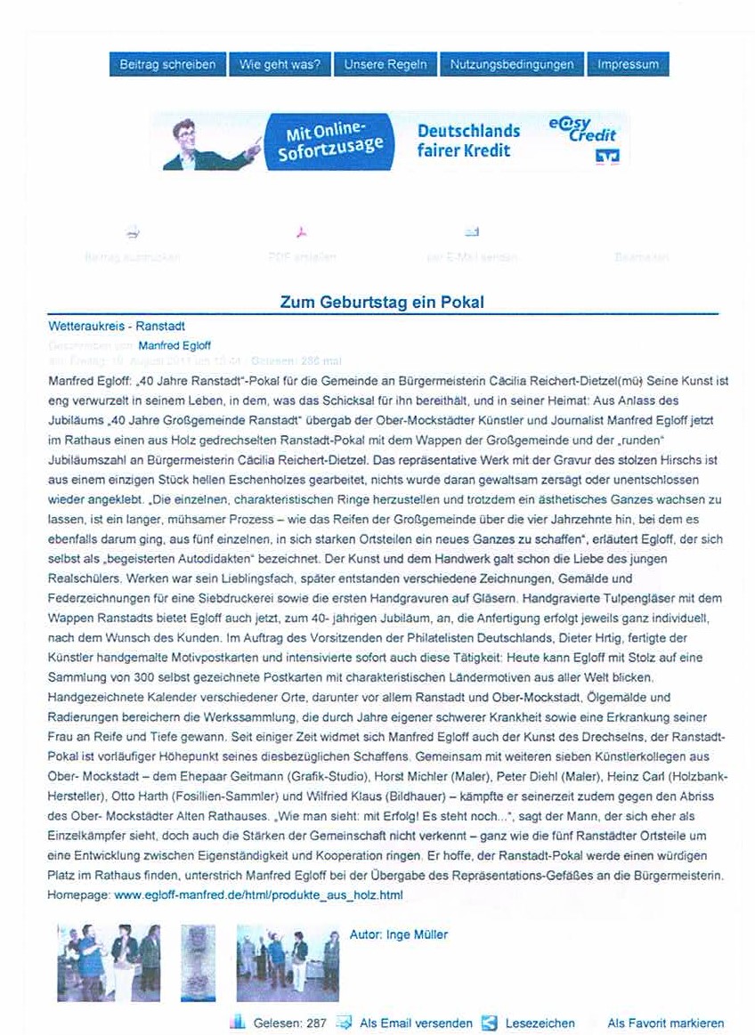 Zum Geburtstag ein Pokal - 40 Jahre Großgemeinde Ranstadt